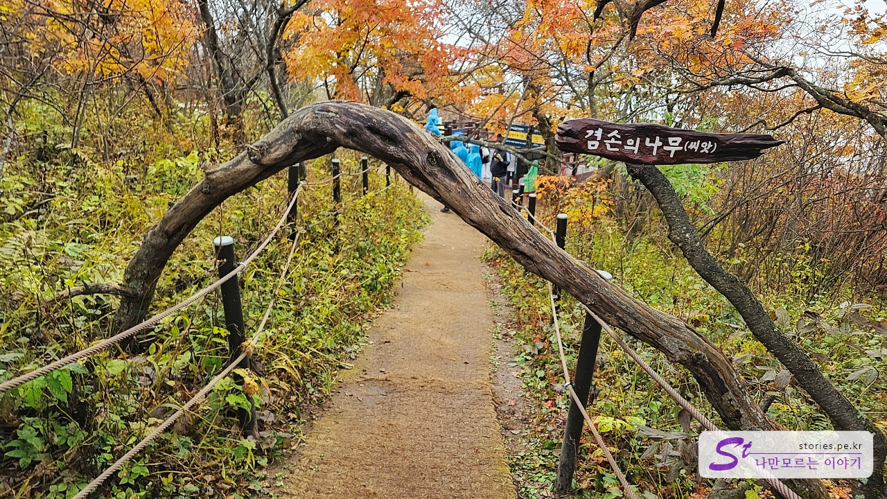 정말 오래되고 거대한 주목나무입니다. 이 나무가 아버지왕주목 나무입니다. 위에 있던 어머니왕주목나무에 비해 더 거대하네요. 여기가 가장 아래쪽입니다. 이제 위쪽으로 올라가면서 케이블카 탑승장으로 가시면 됩니다.