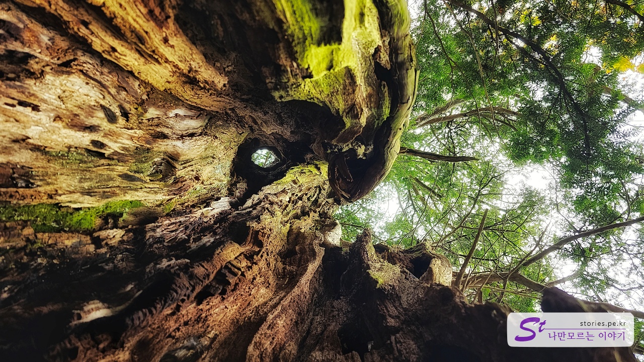 속이 파여있는 오래된 주목나무의 안쪽에서 위를 바라보고 찍은 사진입니다. 이렇게 찍어보라고 표지판에 안내가 되어 있네요. ㅎ