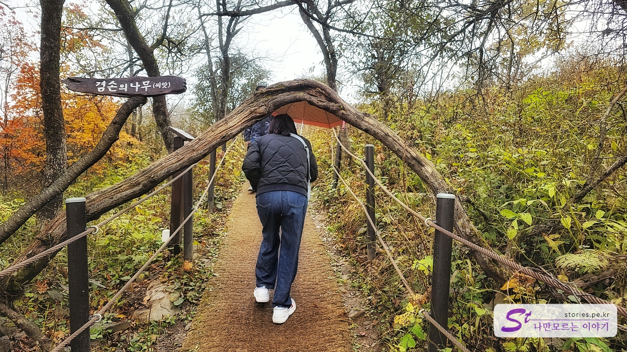 머리를 숙이고 지나가야 한다고 해서 겸손의 나무라고 이름을 붙였네요. 여기 말고도 한 바퀴 도는 와중에 겸손의 나무가 몇 개 더 있었습니다.