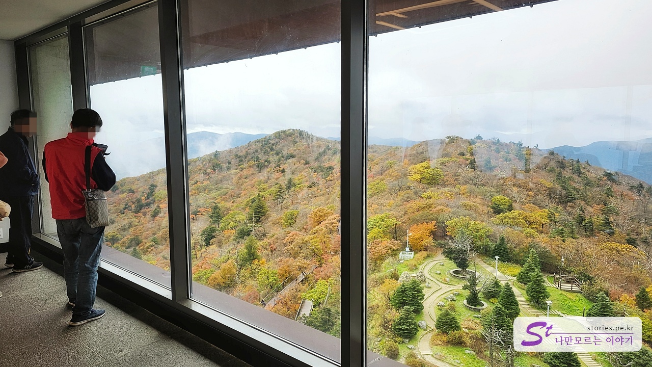 이렇게 한 바퀴를 돌아서 케이블카 탑승장에 도착했습니다. 저희는 출발할 때 날씨가 좋지 않아서 스카이워크를 제대로 즐기지 못했었지만 천년주목숲길을 돌고 오니 다시 날씨가 맑아져서 다시 한번 스카이워크에 올라가서 멋진 풍경을 보고 내려왔습니다.