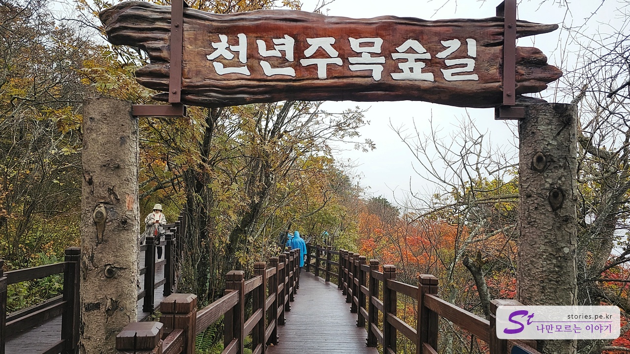 여기서부터 천년주목숲길로 이어지는 나무데크길이 나타납니다. 길 이름처럼 약 천 년간 살아오고 있는 멋진 주목나무들이 곳곳에 있습니다.