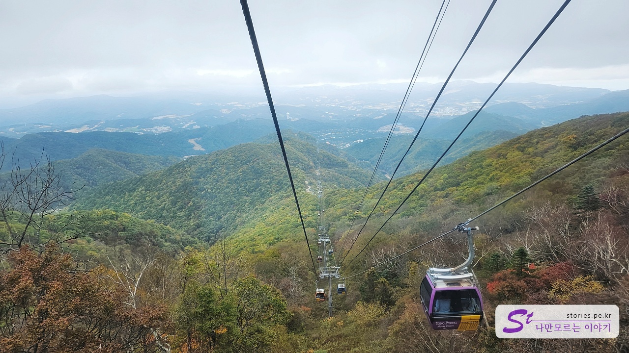 왕복 약 7.4Km, 해발 1,458m 높이까지 올라가는 국내 최대 길이의 케이블카라 이 자체만을 즐기기에도 만족스럽습니다.