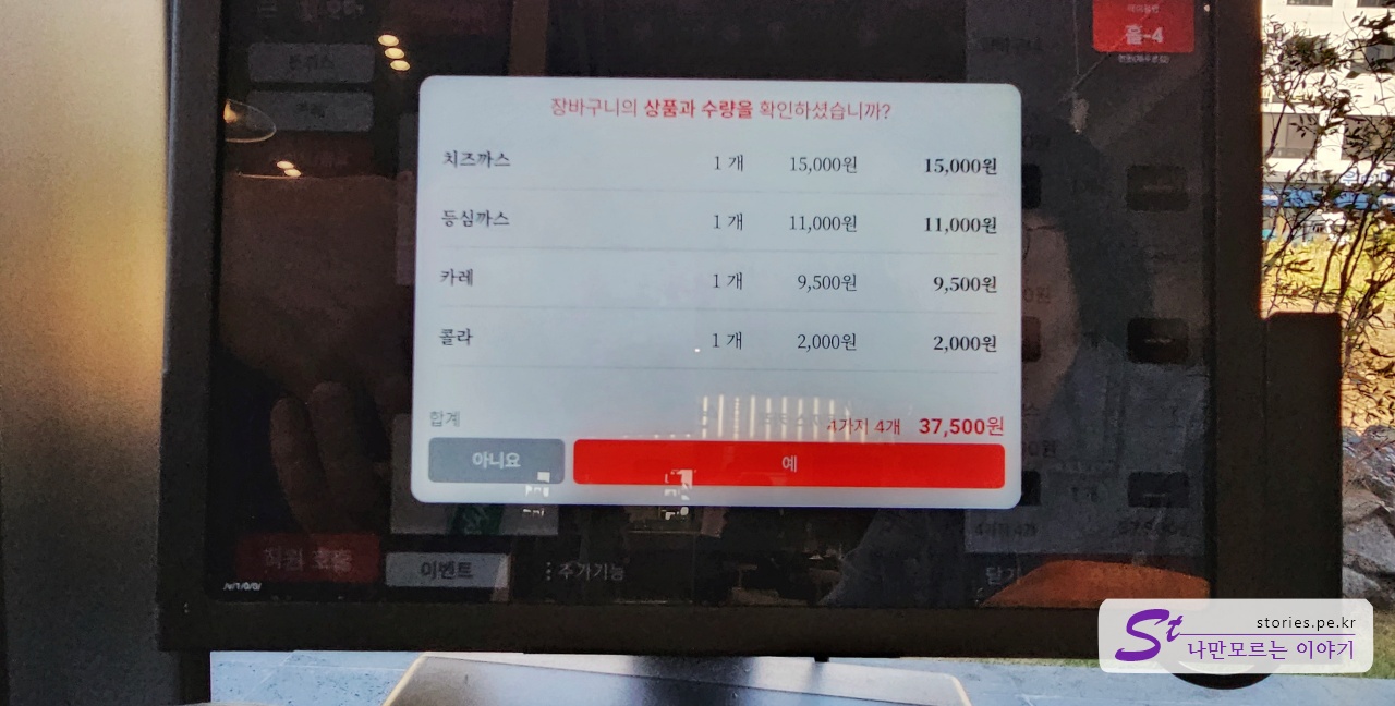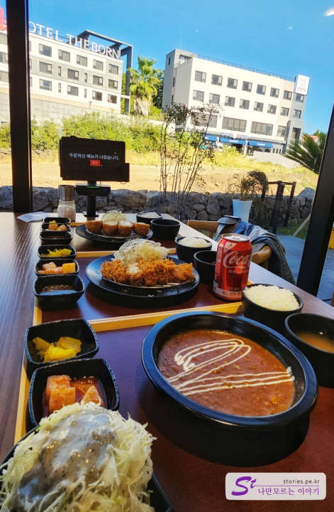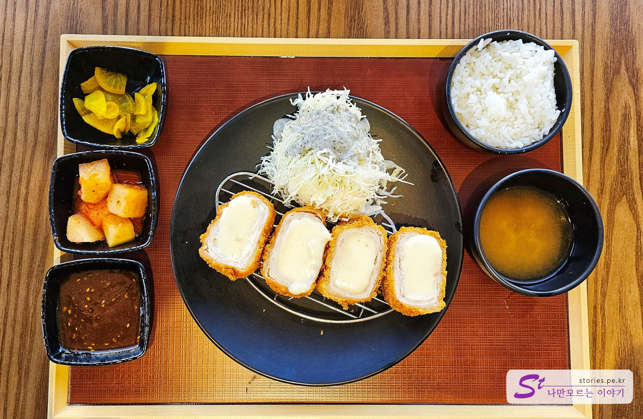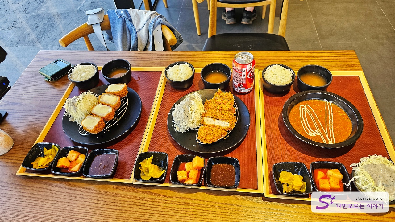 우리는 치즈까스와 등심까스, 카레를 주문했습니다.