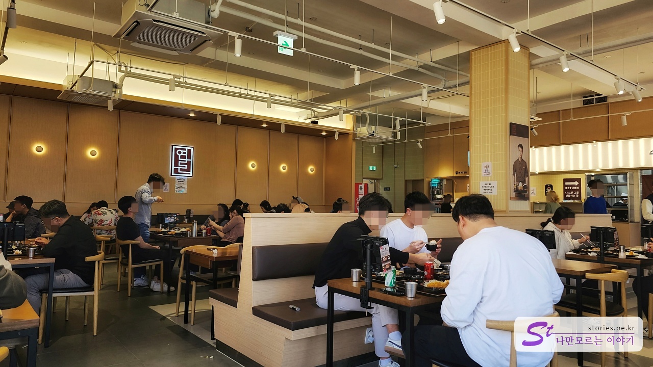 프랜차이즈의 대가 백종원 대표와 관련이 있어서 그런지 운영 시스템은 나쁘지 않았습니다. 식탁에서 주문과 결제를 하고 음식이 나오면 손님이 직접 셀프로 가져다 먹으면 됩니다. 다 먹은 그릇도 셀프서비스입니다.