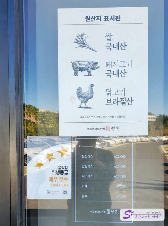 대표 메뉴는 치즈까스 15,000원, 등심까스 11,000원, 안심까스 12,000원이며 카레도 맛이 좋았습니다. 쌀과 고기는 국내산을 사용하고 닭고기는 브라질산을 사용한다고 하네요.